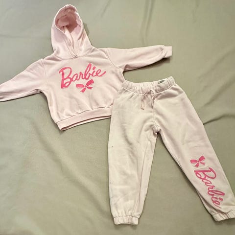 Rosa joggedress fra H&M med Sanrio Hello Kitty motiv. Hette med katteører og sløyfe.