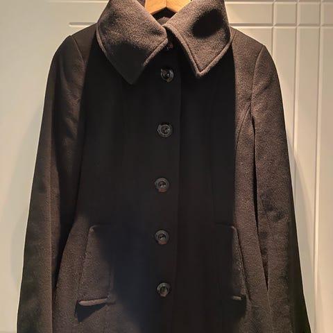 Søt kort ulljakke fra Zara med store knapper, stor krage, vide ermer og stikklommer. Str L