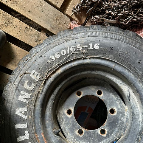 Trelleborg traktorhjul med dimensjon 10.00-16. Dekk uten felg.