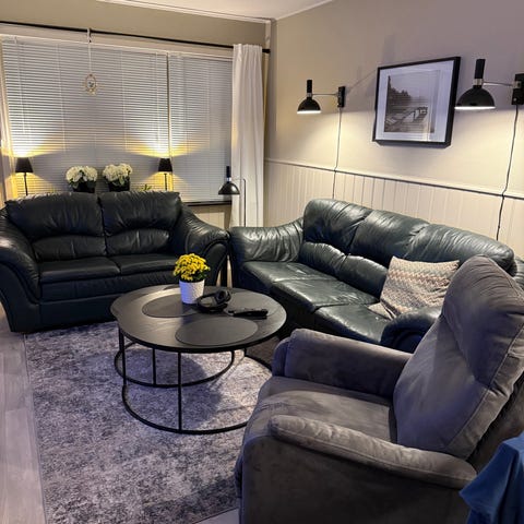 En behagelig 3 seter skin sofa til salg