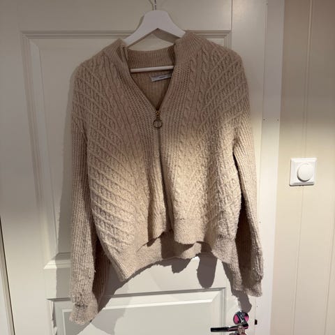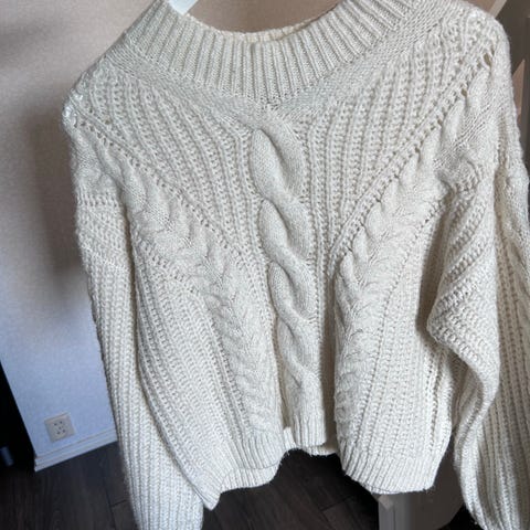 Kremfarget strikkegenser med krage selges. Er i størrelse s fra merket Pull and Bear. Selges da den blir liggende.