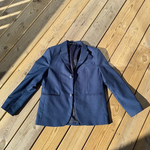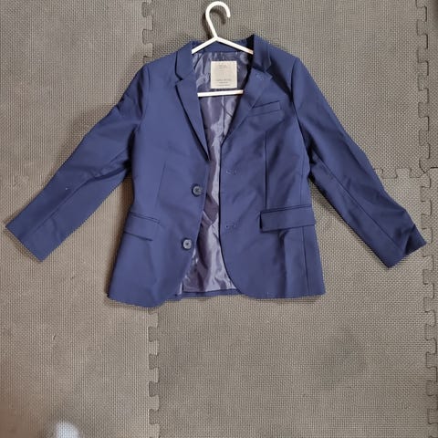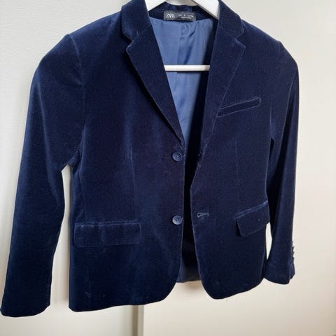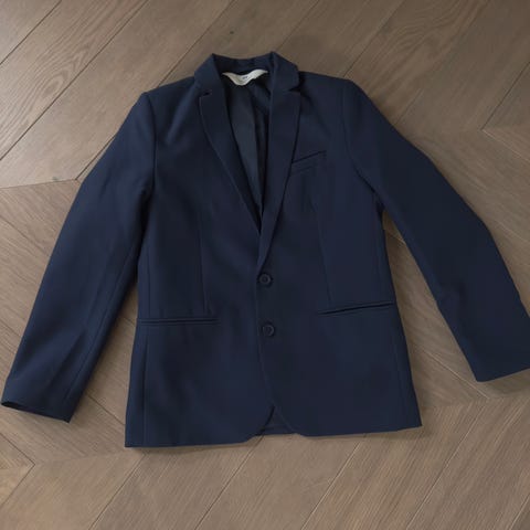 Sett med marineblå blazer fra H&M størrelse 134 og skjorte fra Zara.
