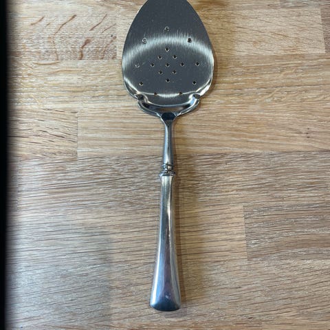 Ostehøvel i sølv, produsert av Th. Marthinsen for OL på Lillehammer i 1994. Ca 25 cm lang. Håndtaket har logo for Lillehammer ‘94 og på baksiden er det piktogrammer.