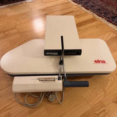 ElnaPress strykeautomat i hvit utførelse. Elektrisk stryke- og presseapparat med stor presseflate og håndtak for manuell betjening. Utstyrt med strømledning og kontrollpanel med regulering på siden. Egnet for pressing og stryking av klær, duker og annet tekstil hjemme. Leveres som på bildene.