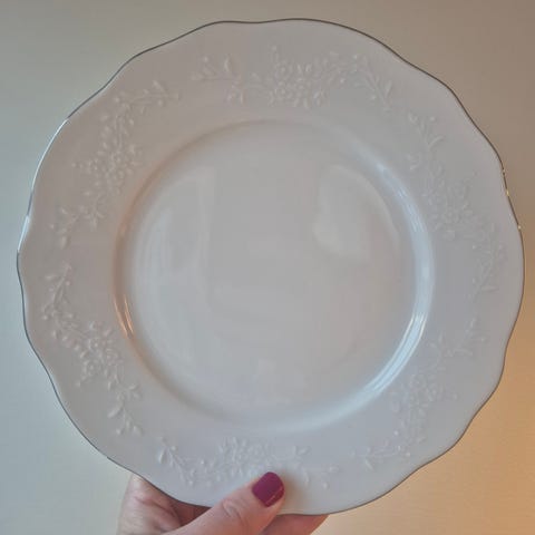 Ovalt fat, 41 cm, fra Royal Porelain, merke Angelina platinum. Fatet er aldri blitt brukt.