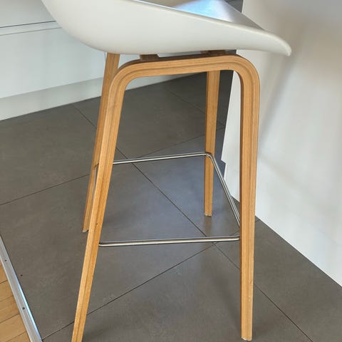 Hay about a stool barkrakk. Hvit med stålfargede ben. Har tre stk, selges for 2000 per eller 5000 for alle tre☺️ nypris på nordic nest er 4649 pr stk.