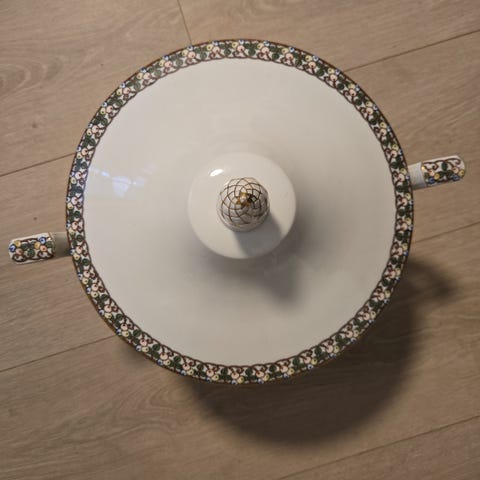 Selger en håndmalt terrin som er signert på undersiden for kr 150,- selve porselenet er produsert av winterling porzellan germany bavaria videre står det håndmalt Reidun 2001.