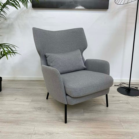 Elegant og komfortabel stol med matchende puff i et stilrent skandinavisk design. Den grå tekstilen gir et rolig og moderne uttrykk som passer perfekt i både stue, lesekrok eller kontor. Puffen kan brukes som fotskammel for maksimal avslapning eller som ekstra sitteplass ved behov. Slanke treben gir møbelet et lett og luftig preg samtidig som komforten er solid og innbydende. Et perfekt lite lounge-sett for deg som vil skape en avslappet og stilfull atmosfære hjemme.