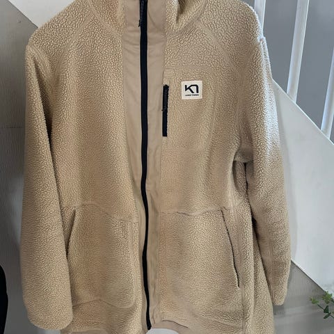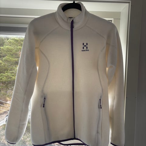 Selger en varm og komfortabel fleecejakke fra Haglöfs i myk teddyfleece. Jakken er i størrelse M (dame) og har hette, glidelås foran og to lommer med glidelås.