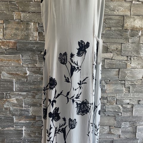 Nydelig, lang kjole fra NLY Eve (Nelly.com), i str. 40. Kjolen er i fargen «champagne» - en fin, beige farge med sølvdetaljer i form av broderte perler/pynt.