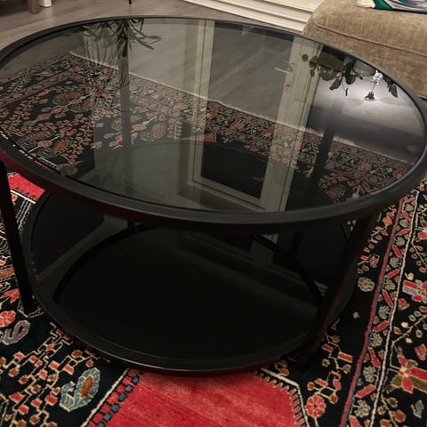 Pent brukt svart salongbord med glassplate fra Skeidar. Ingen skader og fremstår i god stand
