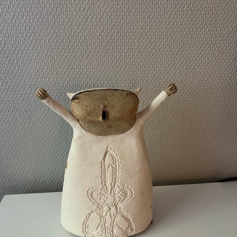 Nydelig keramikkfigur av Maria Øverbye. Høyde 15 cm. Koster 1300,- ny