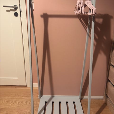 Pent hvitt klesstativ til barn.