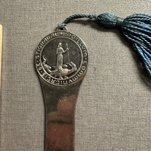 Emaljert med et våpenskjold med det engelske flagg og inskripsjonen «London».