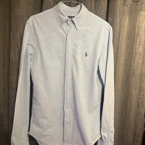 Ralph Lauren skjorte. En skikkelig clean klassiker i lys blå farge med den lille polo rytteren på brystet. Lett og behagelig stoff som gjør den perfekt både til hverdags og litt mer ordentlige anledninger.