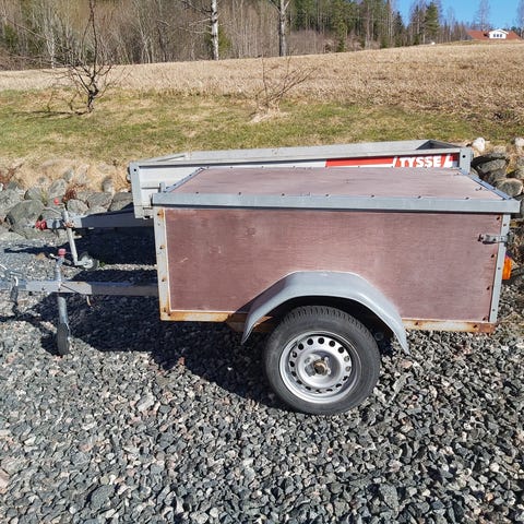 Ukjent merke åpen varehenger med enkel aksling. Hengeren har trekantfeste for tilkobling til bil og åpne karmer i tre med metallforsterkninger. Det er montert baklys under planet og stålfelger med dekk. Bør skifte bunn og lemmer , har brukt den som ATV henger. Byttet dekk for 2 år siden.