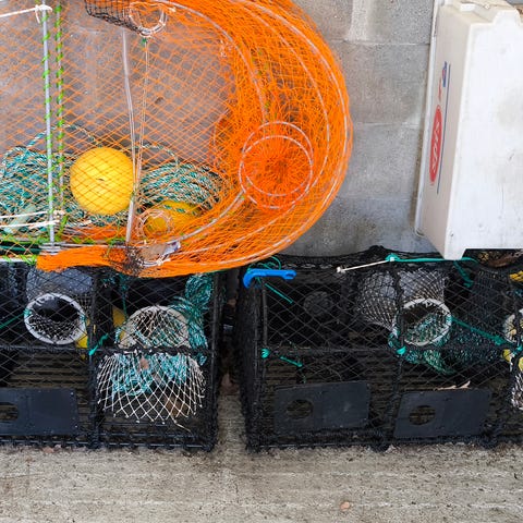 18kg OK Marine teiner selges med 55m tau,fløyt og 2 agnbokser pr teine. 650.pr stk. 2 stk samleteiner følger med ved kjøp av alle 4.