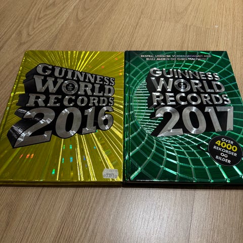 Samling med tre bøker i serien Guinness World Records. Årsutgaver for 2018, 2020 og 2021.