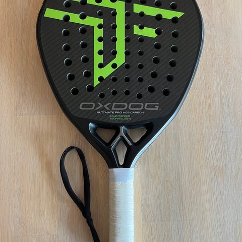 Oxdog Ultimate Pro 2026. Dette er en padelracket egnet for padelspillere som ønsker et racket med balanse mellom kontroll og kraft. Denne racketen veier hovedsakelig 365 gram. Den er aldri brukt men, har litt skrapemerker grunnet gnissing med annen racket, de fleste merker ikke forskjell. Se bilde 8 og 9. Ikke originalt grep på.