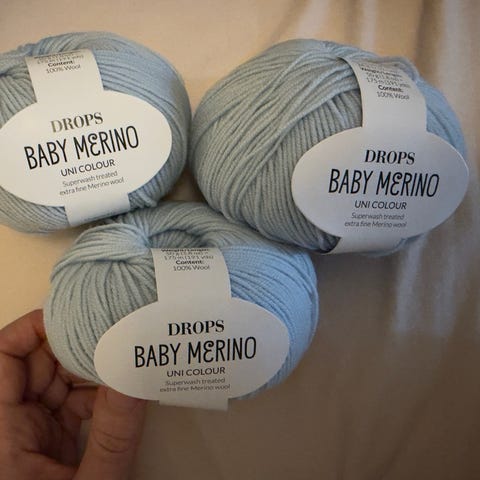 Garn fra drops baby merino uni color farge 22. To ubrukte garnnøster.