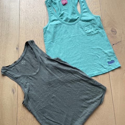 ONLY tanktopper for dame i størrelse XS og M. Toppene er ermeløs med rund hals. Fargen er blå eller lilla. Materiale ifølge merkelapp er bomull. Egner seg som enkel overdel alene eller under andre plagg i hverdagen. Selges for 50 kroner til sammen.