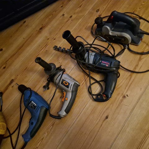 Passer for bruk sammen med elektrisk sag (Bosch) og drill/boremaskin til generelt tre-, betong, - og annet håndverksarbeid, avhengig av type blad og bor. Nøyaktige dimensjoner og typer fremgår av emballasjen på hvert produkt på bildene. Se pris under bildene. Alt selges under halv pris! Samlet kr 1.700,-.