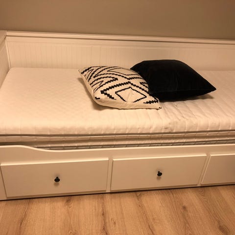 Stått på et gjesterom, lite brukt og allti overmadrass på.