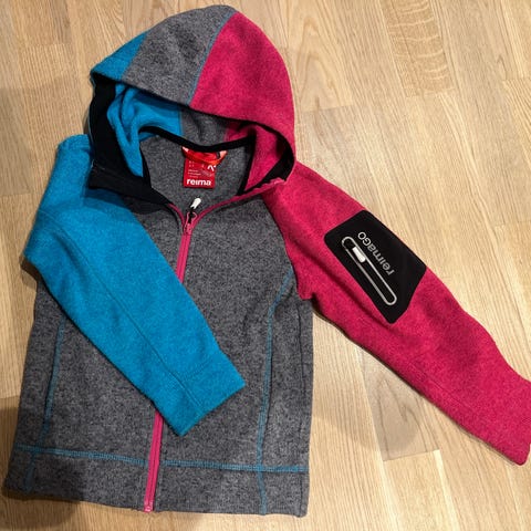 Fin og praktisk fleecejakke fra ReimaGO i flotte farger (grå, turkis og rosa). Jakken har hette, glidelås foran og en liten lomme på armen. Perfekt som mellomlag under yttertøy eller alene på kjølige dager.