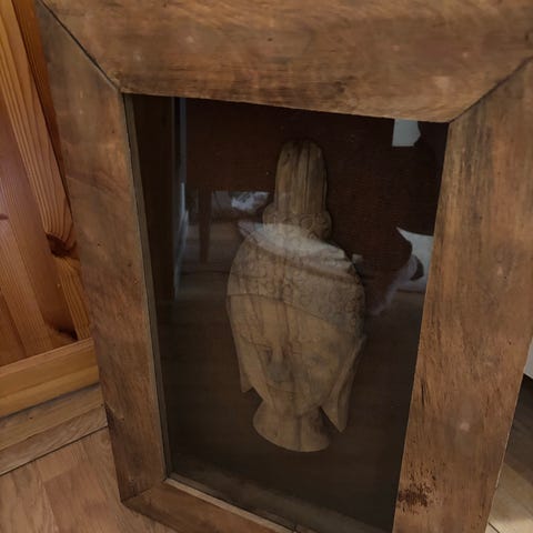 Obs, «glasset» er av plast og har noen riper/små merker. Må hentes på Ensjø.