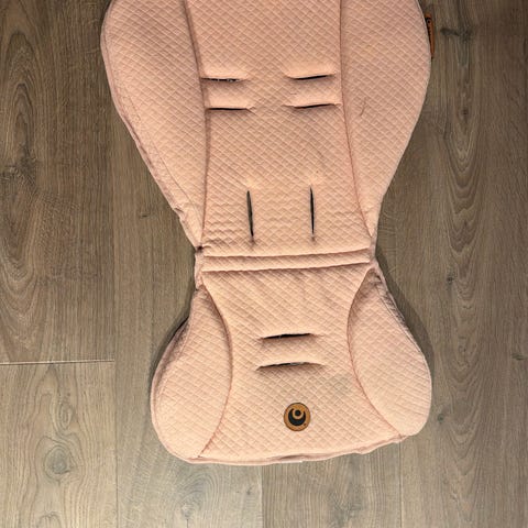 Easygrow air inlay vogninnlegg i rosa. Innlegget er formet for å passe i barnevogn eller sportsvogn, med flere åpninger for selefester. Det gir ekstra polstring og komfort i setet, og kan bidra til å beskytte vognens originale trekk. Passer til bruk i vognsete der det er standard seleåpninger.