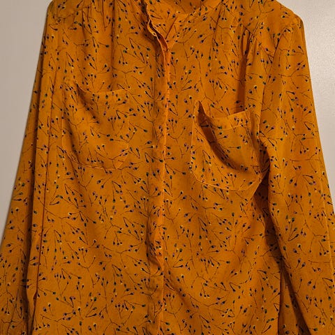 Days Like This bluse for dame i størrelse M. Blusen er flerfarget med blomstrete mønster på rosa bunn. Materiale i polyester med lett struktur i stoffet. Modellen har halvlange ermer med lett utsvingte ermekanter og snøring nederst i kanten. Passer som hverdags- og penbluse.