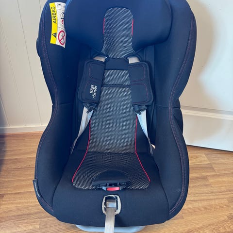 Barnesete med roterende base. Har vært primærstol for to barn fram til guttungen ble for stor til den.