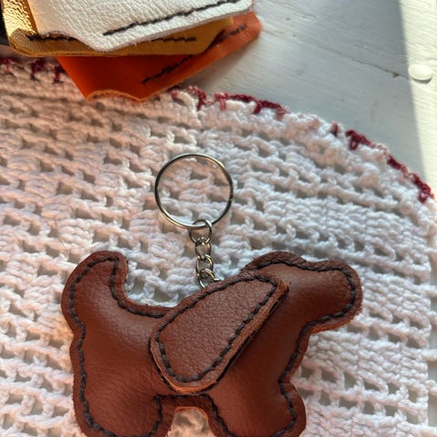Selges en ubrukt nøkkelring / veske charm håndlaget, skåret ut av en kastanje med dyremotiver fra Namibia.