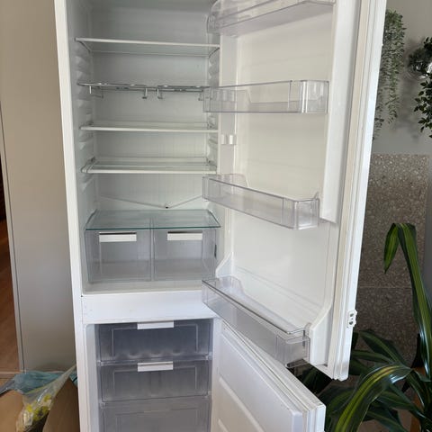 Kjøledelen har flere justerbare hyller i glass, en stor grønnsaksskuff og dørhyller for oppbevaring av flasker og mindre varer. Frysedelen har tre gjennomsiktige skuffer som gir oversiktlig lagring av frossenmat.
