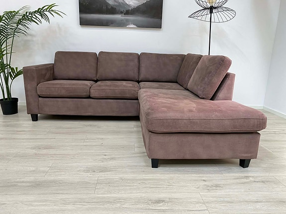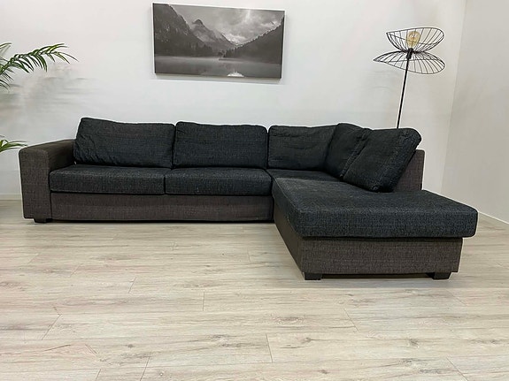 Romslig og komfortabel hjørnesofa i mørk tekstil som gir stuen et moderne og innbydende uttrykk. De brede sitteflatene og de gode ryggputene sørger for høy komfort, perfekt for lange kvelder med avslapning, film eller hyggelige sammenkomster. Sjeselongene gir ekstra plass til å strekke ut beina og skaper en ekte loungefølelse i rommet. De lyse trebeina gir en fin kontrast til den mørke tekstilen og tilfører sofaen et stilrent skandinavisk preg. En solid og komfortabel sofa som raskt blir hjemmets favorittplass.