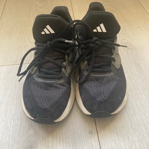 Adidas joggesko unisex i størrelse 38. Skoene er hvite med svarte striper. Overdelen er i tekstil med snøring foran og gummisåle. Egnet som fritids- og treningssko for barn og ungdom.