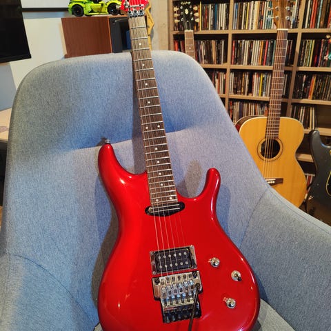 2 humbucker pickups. Lettspilt og rå gitar. Kun brukt til øving og hjemmebruk, så den er i helt fin stand. Earnie Ball reim med strap locks medfølger.