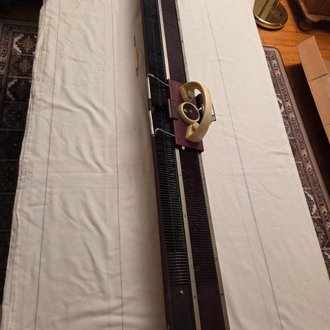 Eldre Empisal Knitmaster strikkemaskin med tilbehør.