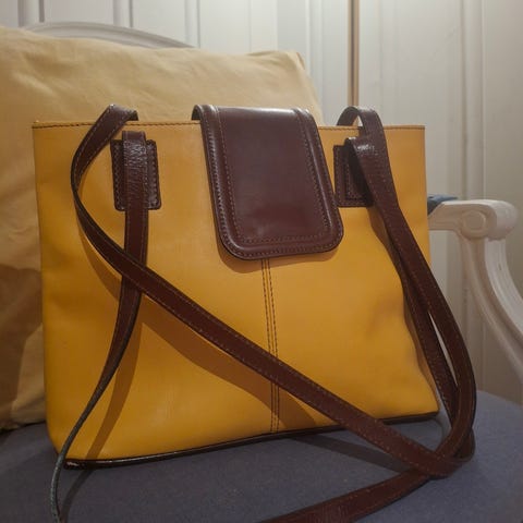 Selger en svært praktisk og stilig liten skulderveske fra det italienske merket Giulia Pieralli. Vesken er i en flott cognac-brun farge med en marmorert skinn-look som gir et eksklusivt preg.