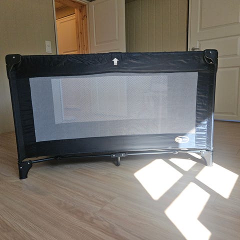 Svart Reiseseng 4Me (120 x 60 cm) lett og sette opp og ta ned, madrass følger med.