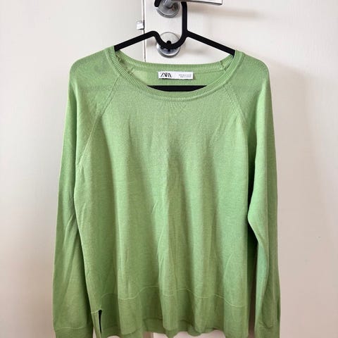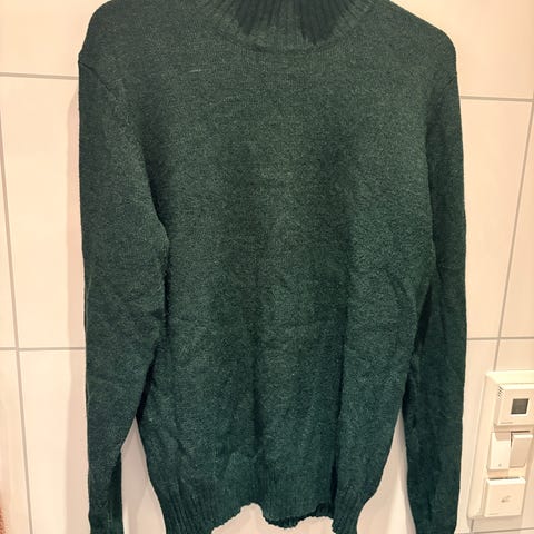 Vila genser for dame i størrelse M. Genseren er grønn og laget i polyester og viskose. Klassisk modell med rund hals og lange ermer. Passer til hverdagsbruk og kan kombineres med både bukser og skjørt.