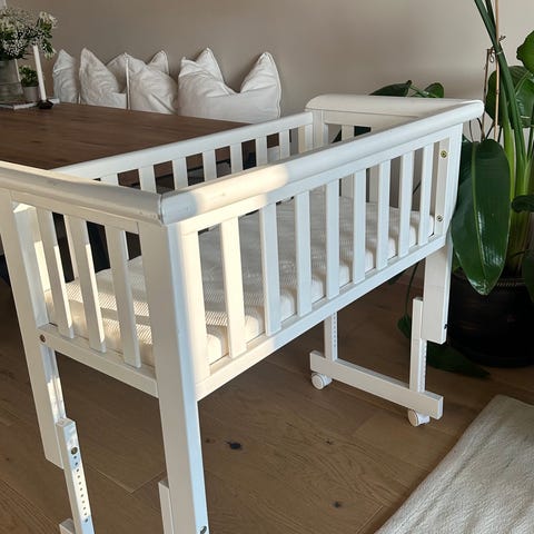 Babyen vår har vokst ut av sengen og vi ønsker derfor å selge vår pent brukte babybay bedside crib. Vi som foreldre har vært veldig fornøyd med denne sengen. Virker som baby også har trivdes.