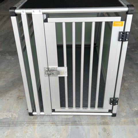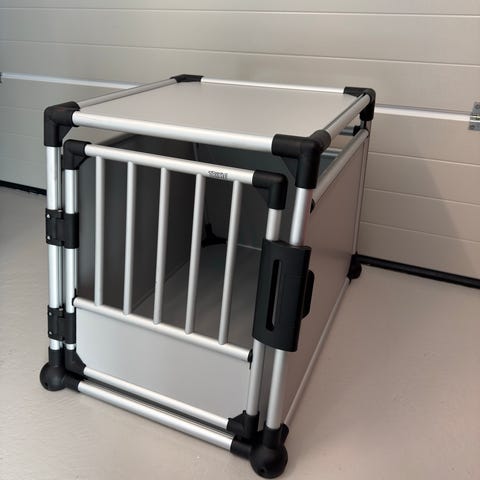 Så godt som nytt kvalitets hundebur i aluminium fra Metbox Norge.