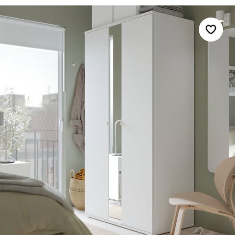 Stort skap, kan brukes både i gang og på soverom. Speildører. Innvendig både hengeplass og hyller. Følger dessuten med en trådskuff. Er nå demontert. Ingen merker på speil eller utside, men hyllene er blitt litt buet. Kan enkelt stives av.