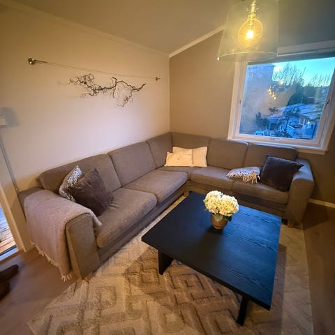 Mørk grå hjørnesofa lite brukt.