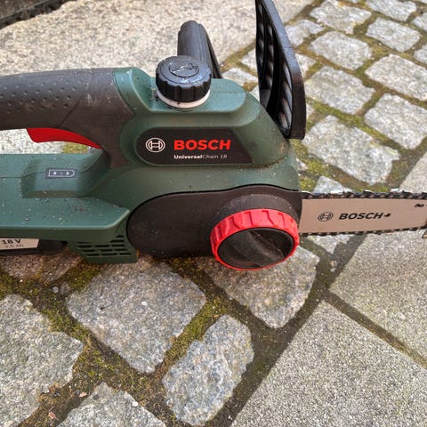 Makita kjedesag, elektrisk modell i blå og svart farge. Sagkroppen har ergonomisk håndtak og integrert kjedestramming. Egnet til kapping og beskjæring av trevirke i hage og vedarbeid. Brukeren må selv kontrollere nøyaktig modellbetegnelse, sverdlengde og tekniske data på typeskilt eller i bruksanvisning.