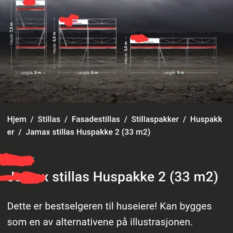 Selger Jamax stillasen min frå 2013 på 132 kvm. Som også har 2 flaker på 2M og 2 grinder på 2 m