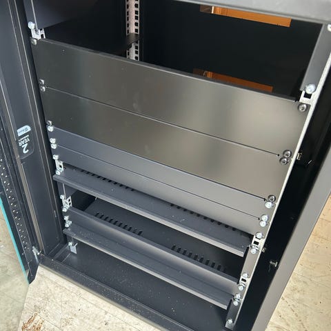 Skapet har glassdør i front og flere perforerte hyller for montering av utstyr. Egnet for organisering og oppbevaring av nettverks- og elektronikkutstyr i mindre installasjoner, for eksempel kontor eller hjemmenettverk. Skapet har standard rackskinner på sidene for montering av kompatibelt utstyr.