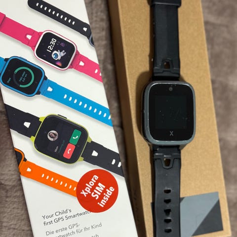 Xplora XGO3 GPS smartklokke for barn i blå farge. Klokken har berøringsskjerm og gummirem med justerbar lengde. Modellen er laget for barn og støtter GPS-sporing samt samtalefunksjoner via mobilnett (krever abonnement fra Xplora).