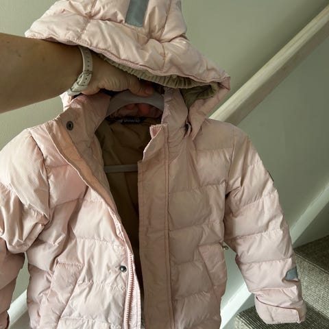 Dunjakke brukt (må bare vaskes med Milo+ tørkes med tennisballer om den blir skitten). Passet fra 3 år til 5 år (lang tid). Varm og god pga dun